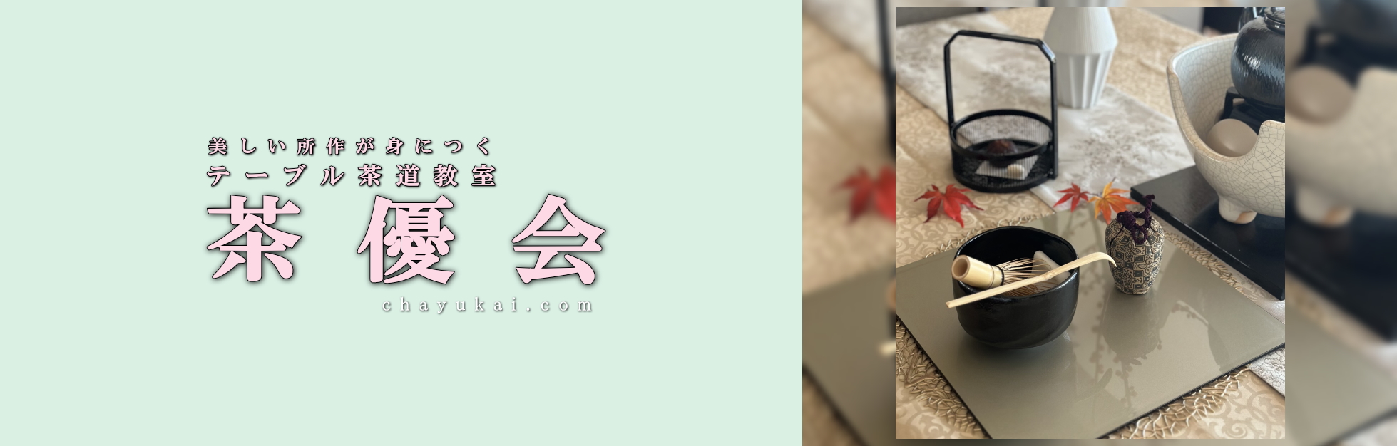 茶優会では茶室も高価な道具も必要なく、日常に取り入れやすいテーブル茶道という形でお茶の心をお伝えしています。