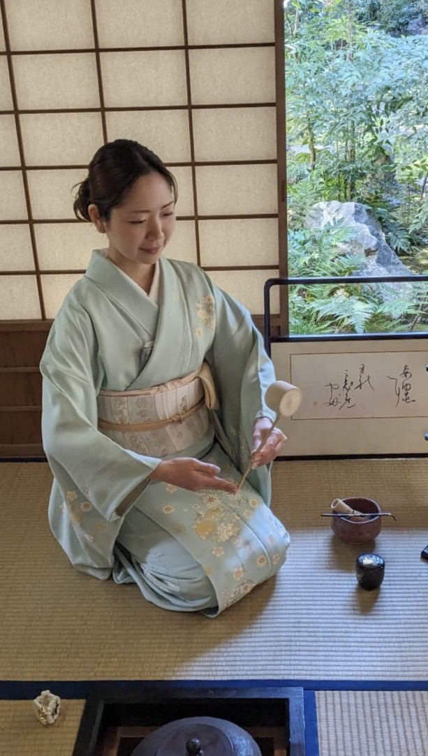 裏千家茶道教室での講師経験を経て、茶道の良さをもっと気軽に多くの人に知ってもらいたい、そして茶室の中だけではなく茶道を身近な日常に寄り添うものにしたいという思いでテーブル茶道教室を開講。